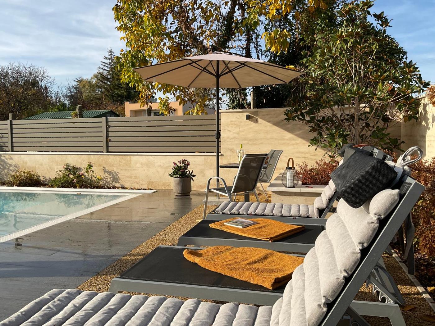Boasting air-conditioned accommodation with a pool with a view, Weekend House Alsóörs is situated in Alsóörs. The property features pool and garden views, and is 16 km from Tihany Abbey. There is a sun terrace and guests can make use of free WiFi and free private parking.