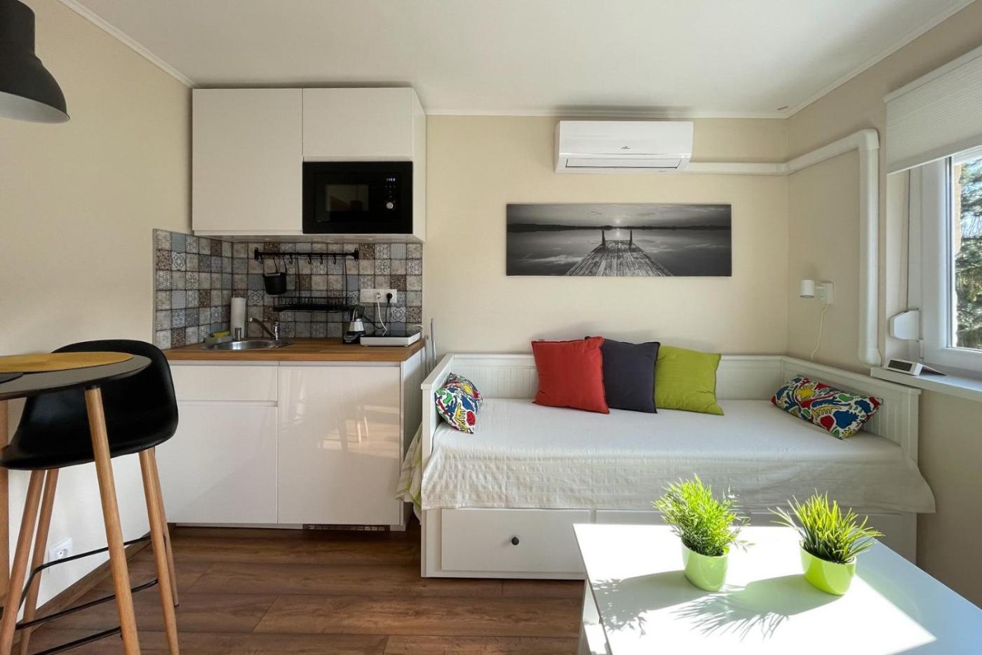 Studio. The studio offers a wardrobe, a sofa, as well as a private bathroom featuring a shower and a hairdryer. The well-fitted kitchenette features a stovetop, a refrigerator, kitchenware and a microwave. The air-conditioned studio provides a flat-screen TV, a washing machine, a private entrance, a tea and coffee maker as well as garden views. The unit offers 1 bed.